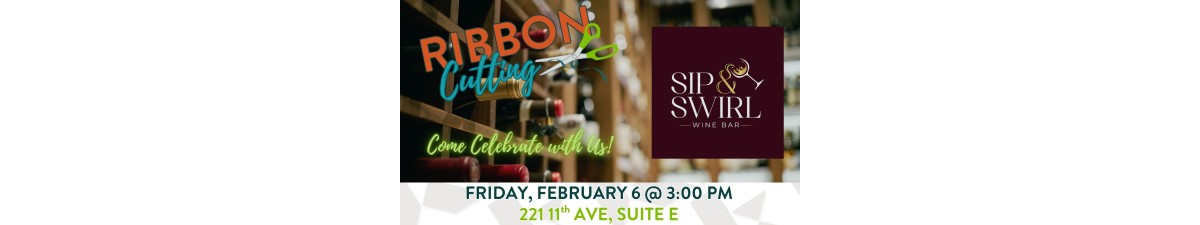 Join us at the Grand Opening and Ribbon Cutting Ceremony for Sip & Swirl Wine Bar, located at 221 11th Ave, Ste E at 3pm on Friday, February 6th!